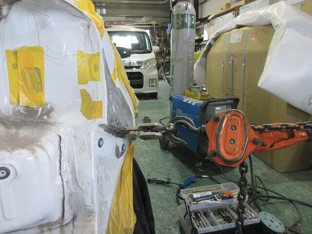 右Rフェンダー(クウォーターパネル)板金修理での入庫です